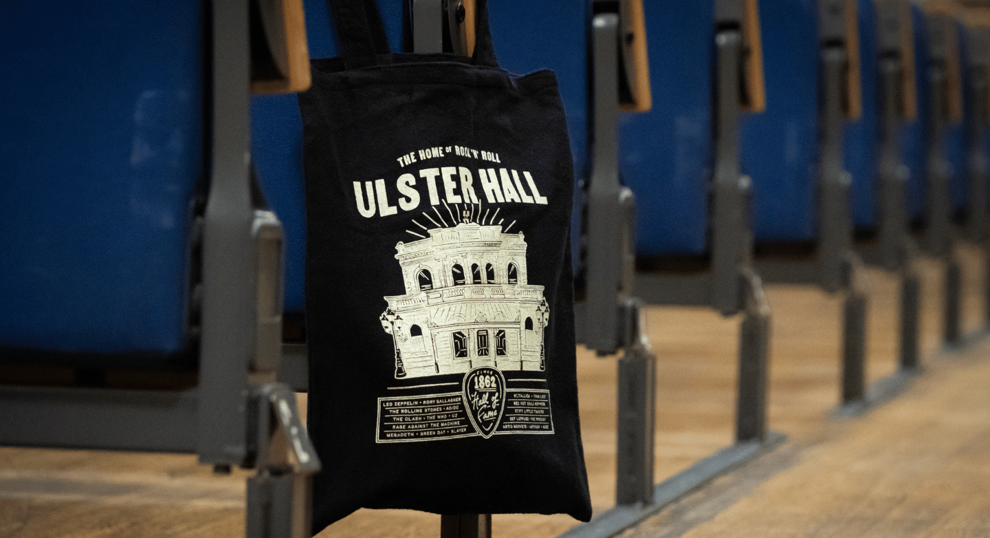 The bags are now available from ulsterhall.co.uk, along with a new range of limited-edition Ulster Hall heritage posters and t-shirts celebrating the venue’s iconic performances through the years.